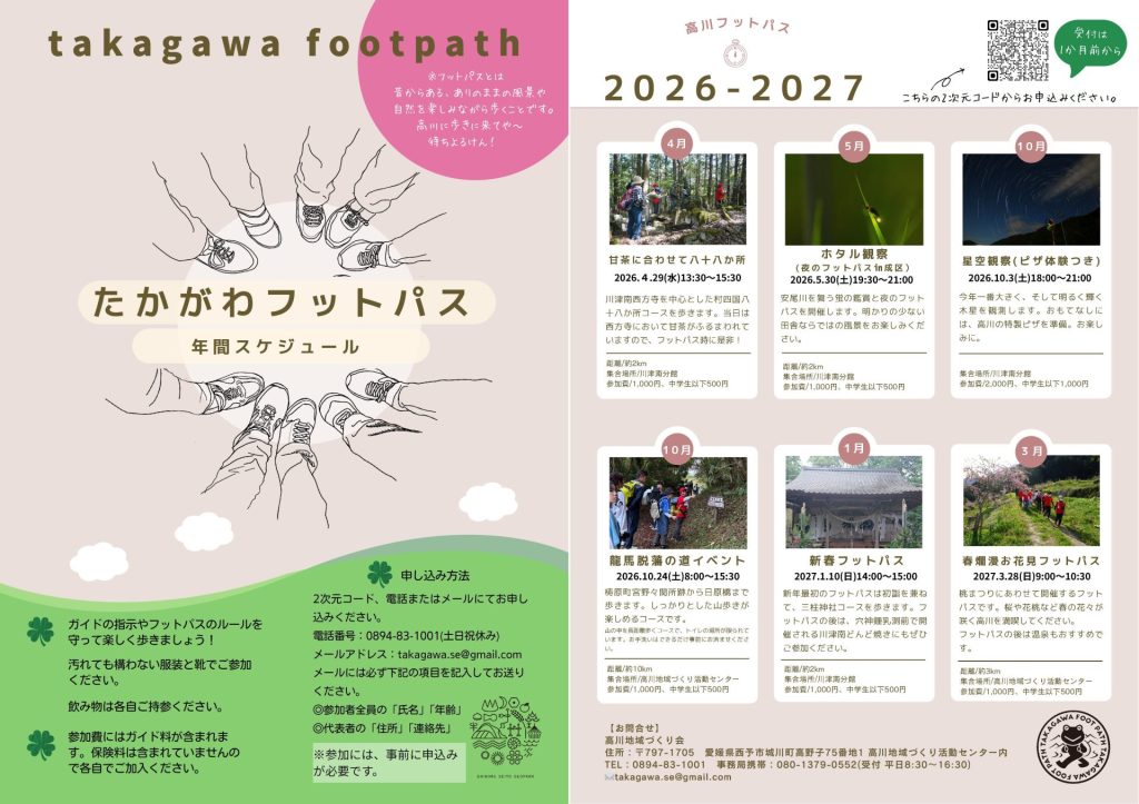 令和8年度たかがわフットパス年間スケジュールを作成しました。